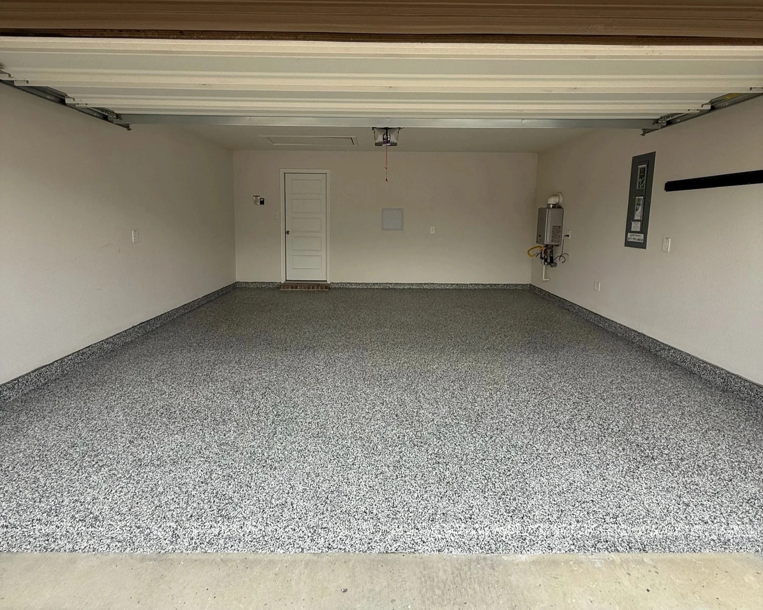 Finally, we lock it all in with a commercial-grade polyaspartic topcoat. This finishing layer adds UV stability, chemical resistance, and long-term protection — leaving your floor with a clean, glossy finish that stands up to whatever life throws at it.